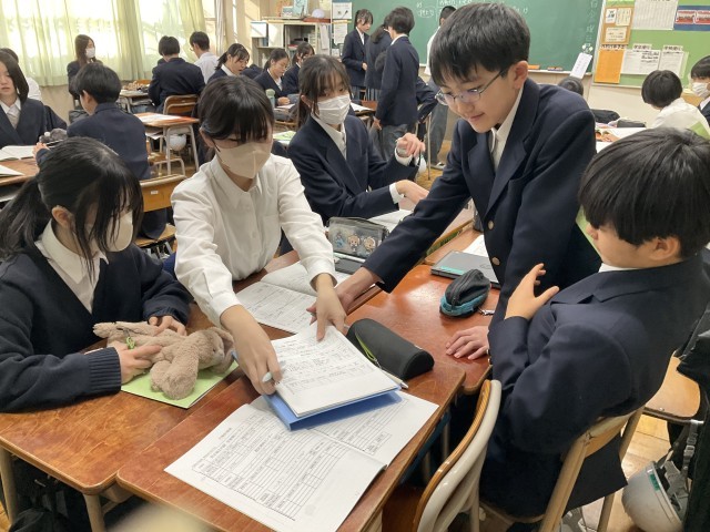 校外学習の行動計画を確認しています。