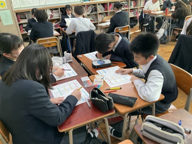 色鉛筆で自分の虹を塗っています。