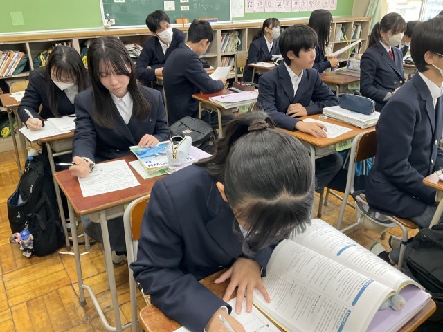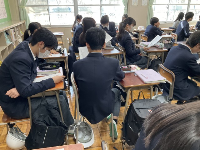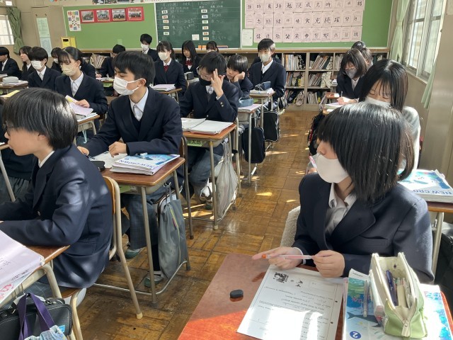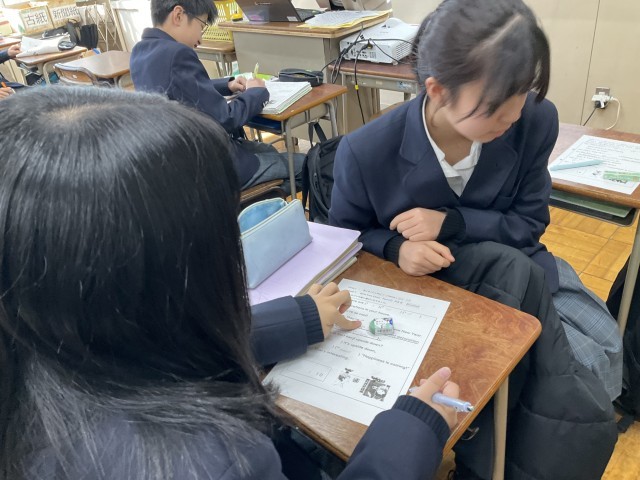 リスニングの答え合わせをしています。