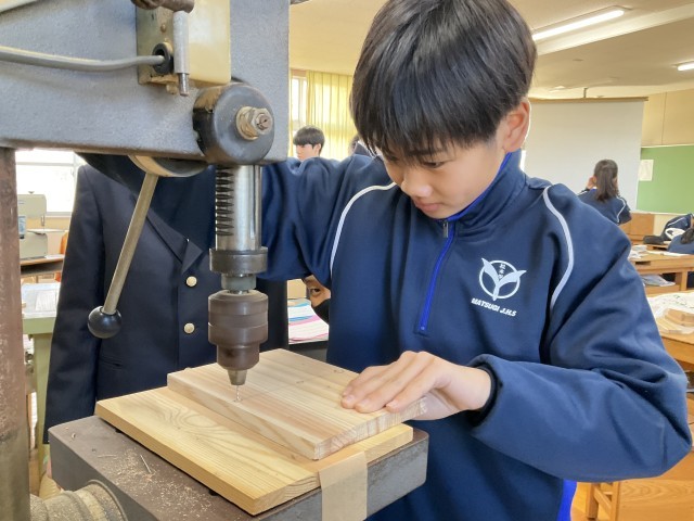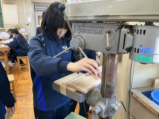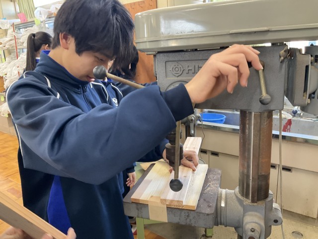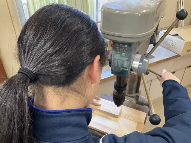 けがきが終わったら、ボール盤で穴あけをします。