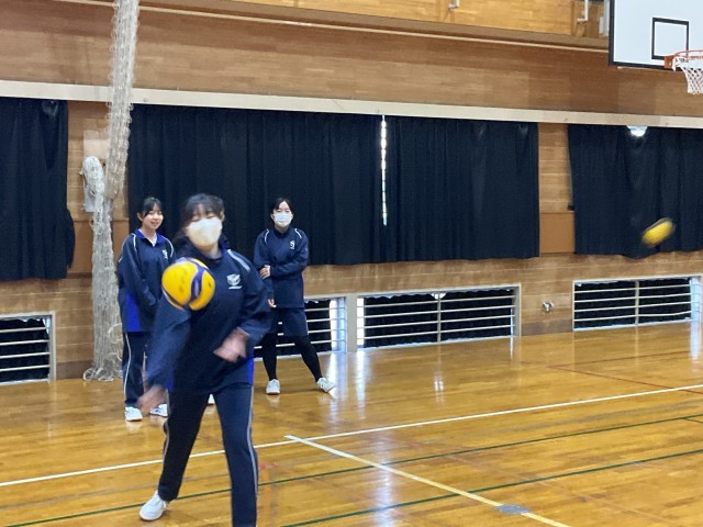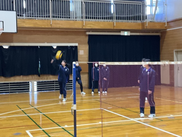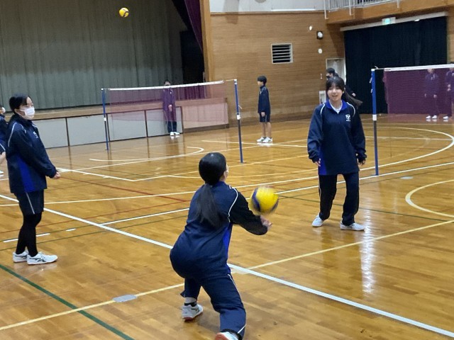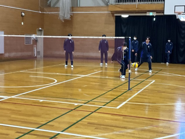 バレーボールの試合をしています。