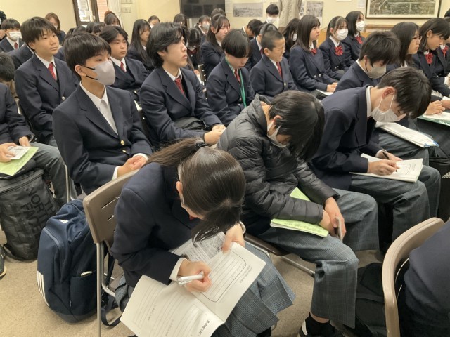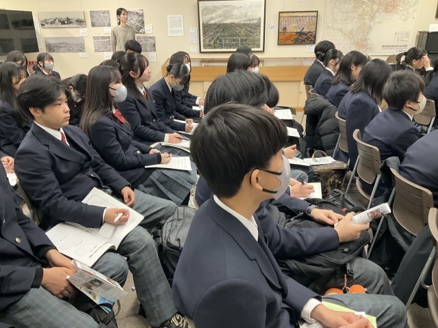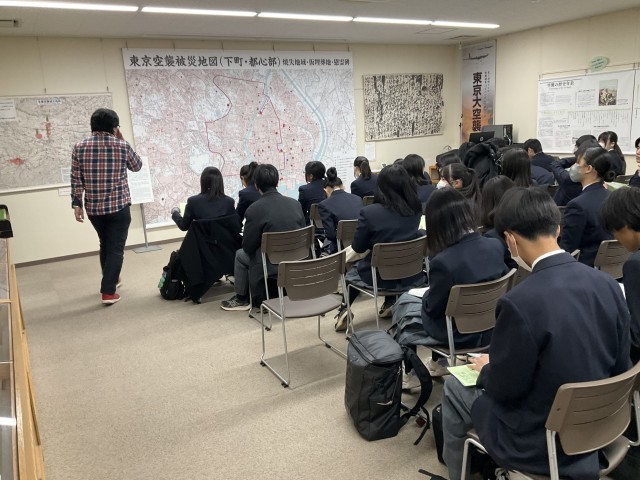 東京空襲についてガイダンス映像を視聴し、講話を聞きました。
