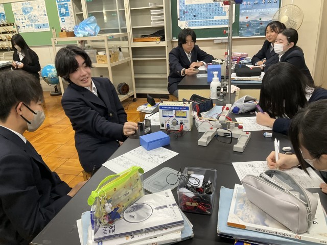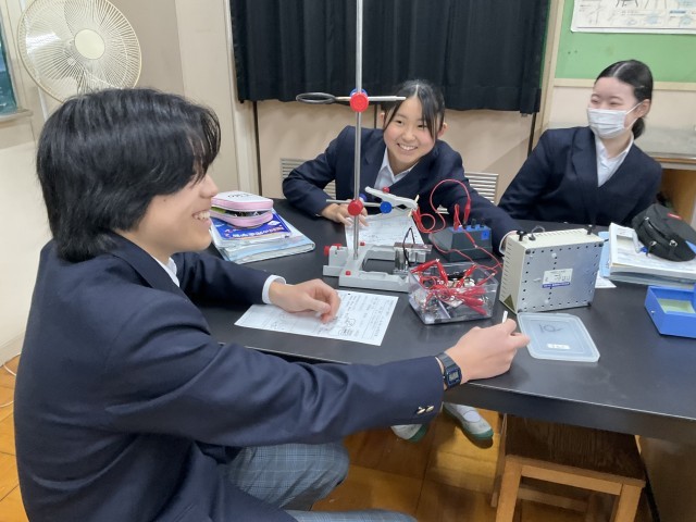 電流、磁界、力の向きを確かめています。