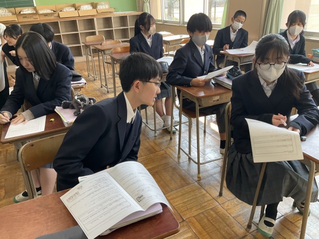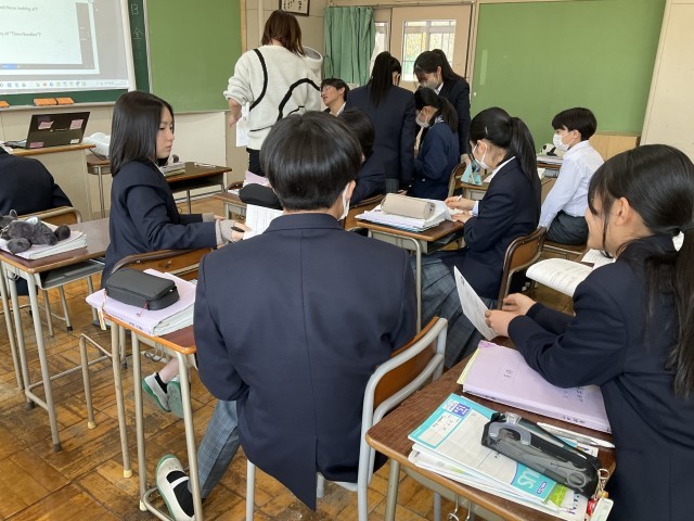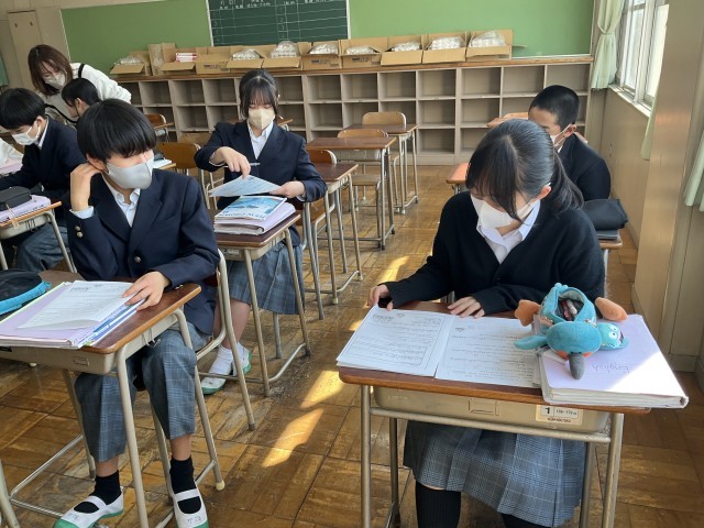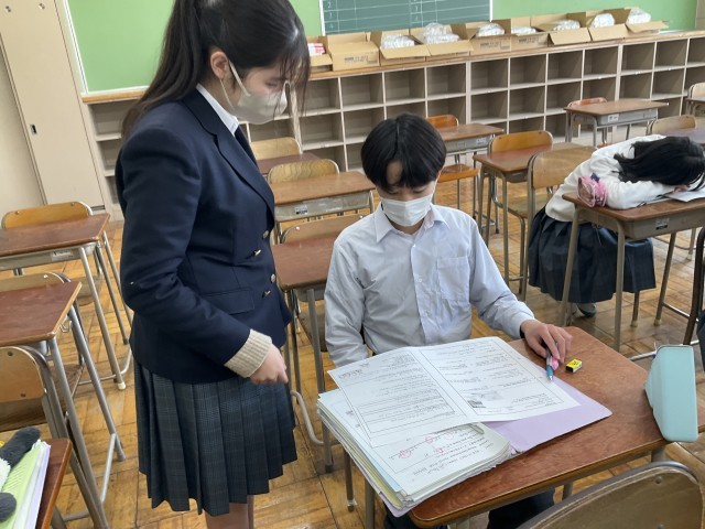 ワークシートの問題の答えを確認しています。