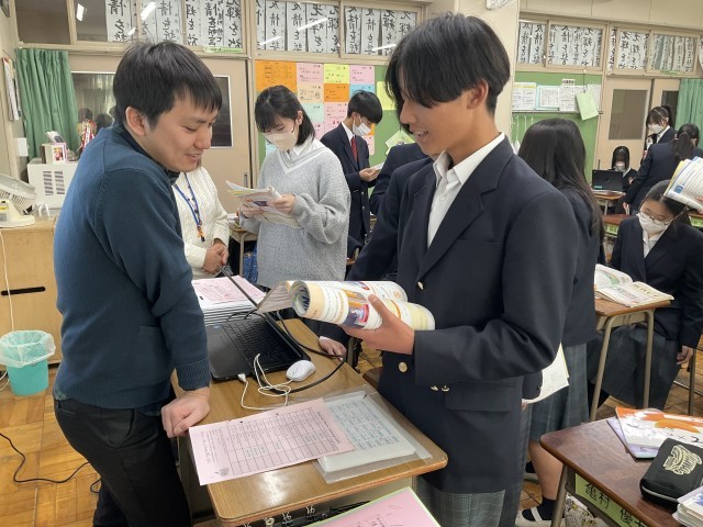 教科書の音読テストをしています。