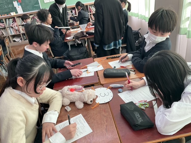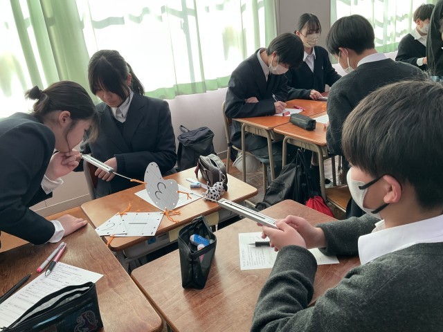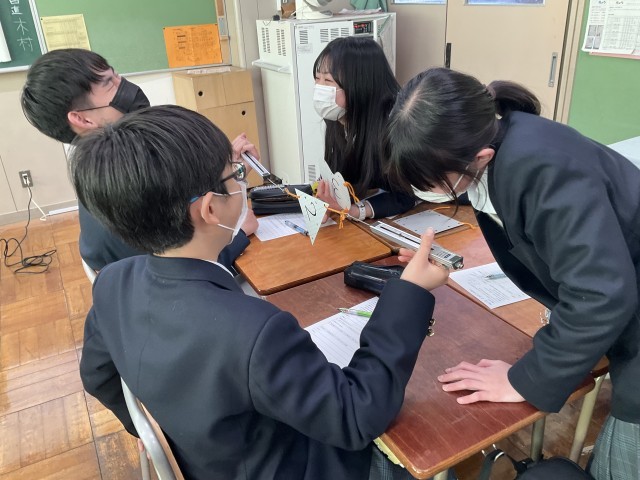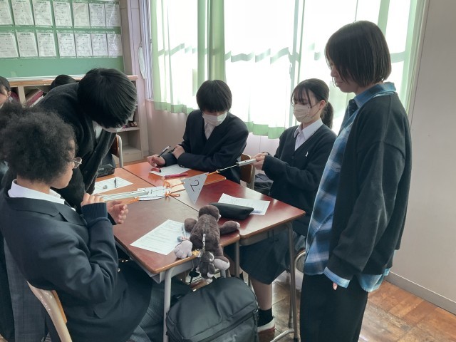 2力のつりあいの実験をしています。
