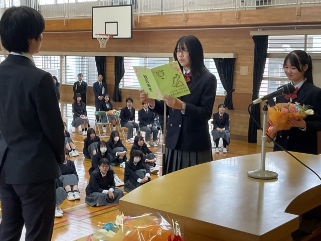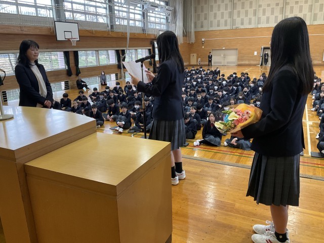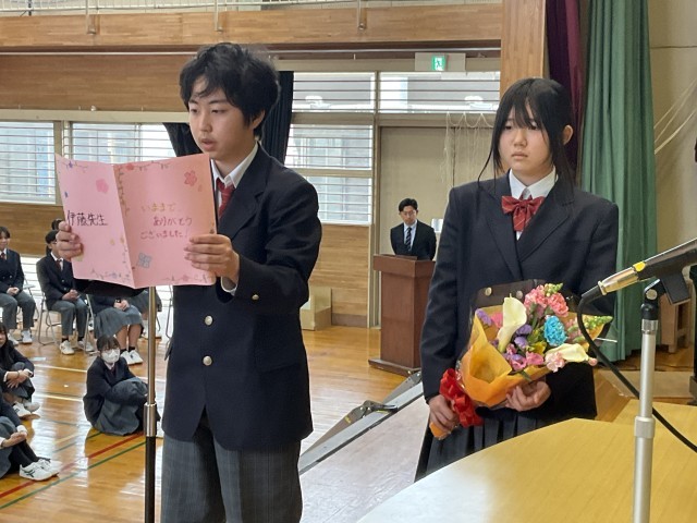 離任される先生から生徒たちに、それぞれメッセージが送られました。