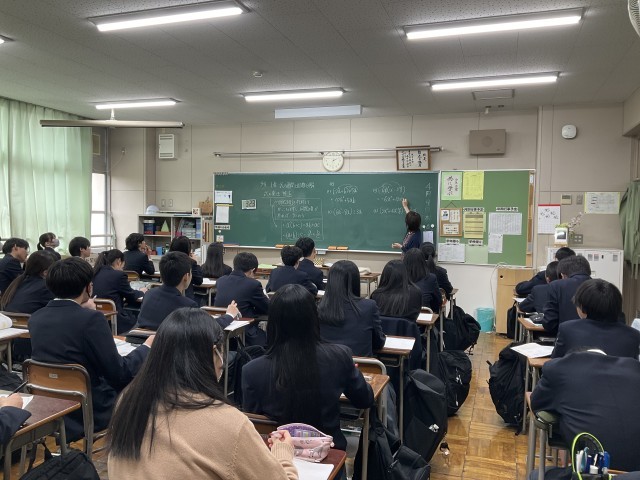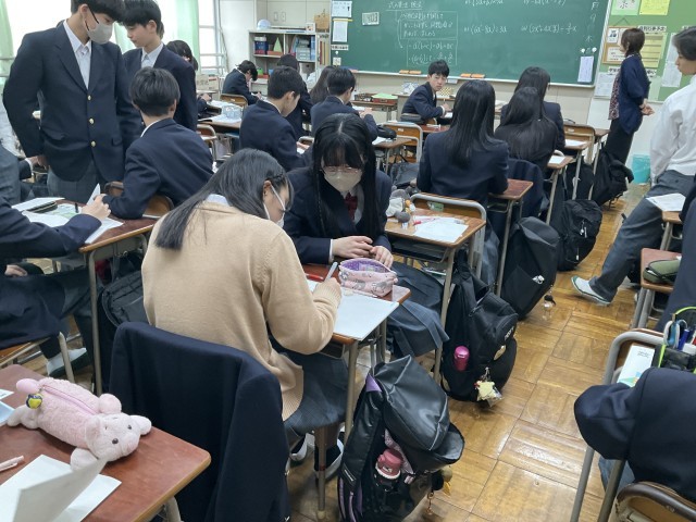 復習問題の演習後.生徒同士で確認し合い、教え合っています。