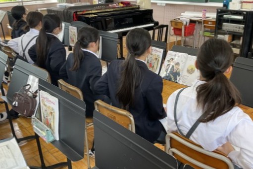 発声練習をした後、美しい声で歌うための「合唱講座」を受けています。