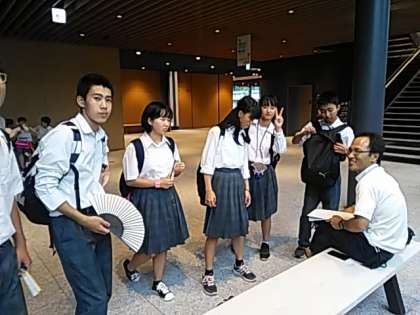 奈良公園班行動を終えて、バスターミナルでチェックを受けています。