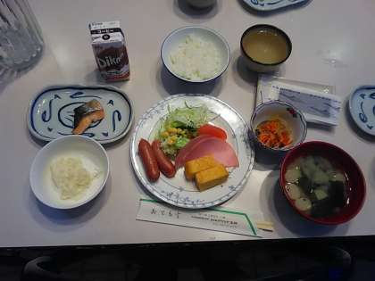 2日目の朝食です。食事係の準備もずいぶん早くなりました。