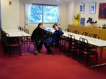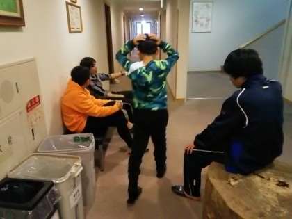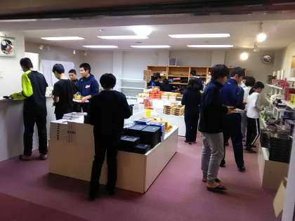 講習が終わり、入浴と並行して、お土産購入をしています。フリースペースも解放しています。