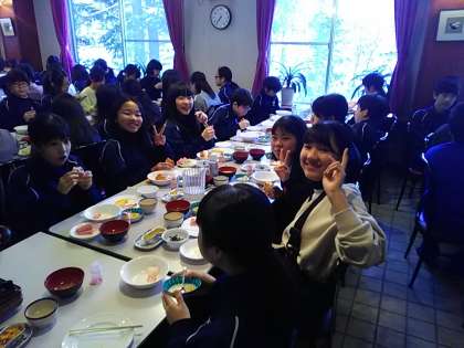 最終日の朝食です。すいませんメニューを撮影し忘れてしまいました。元気な生徒の様子を替わりに!
