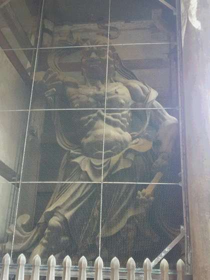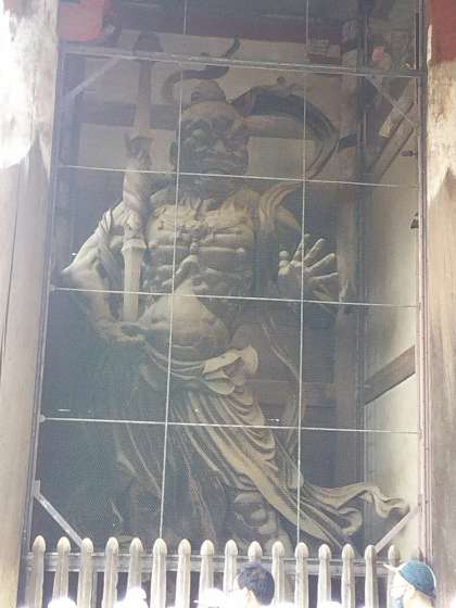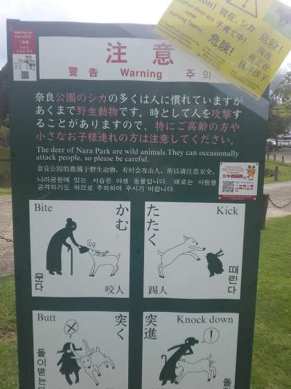 東大寺南大門の金剛力士像と沿道の鹿についての案内板です。