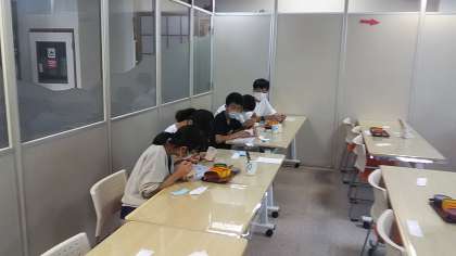 こちらでは、清水焼の絵付けに挑戦しています。自分だけの湯飲みができます。出来上がりが楽しみです。