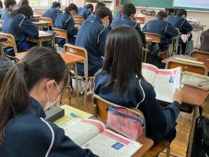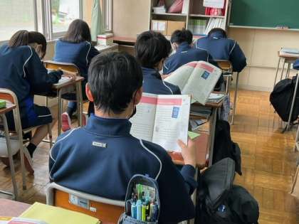 2校時、本文のリーディングの練習をしています。