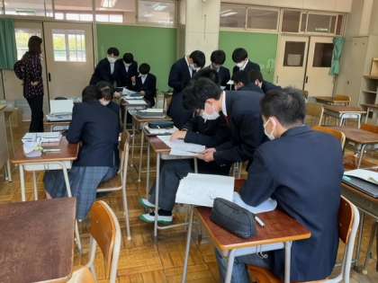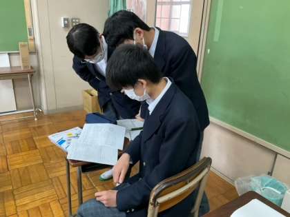 友達と相談しながら問題を解いています。