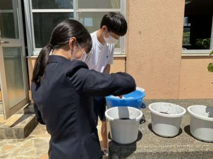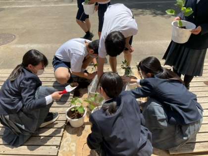 なすやミニトマトなど、各自で選んだ植物を栽培します。
