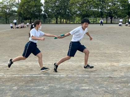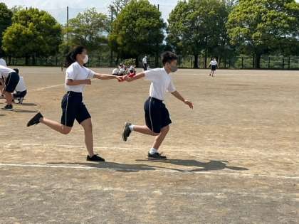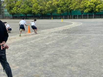 全員リレーの練習をしています。