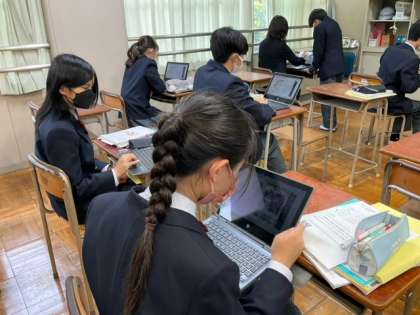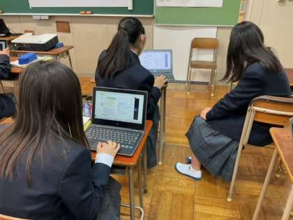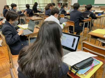 学習端末で本文のリスニングをしています。