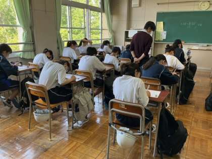 少人数のクラス分けの参考とするテストをしています。