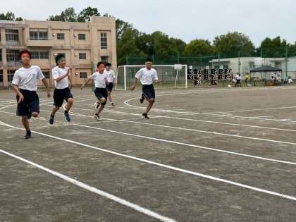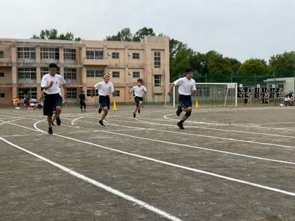 2年男子100m走が始まりました。