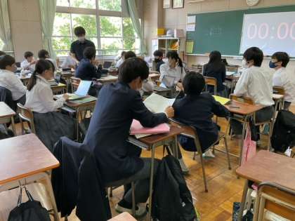 トランプで発表の順番を決めています。