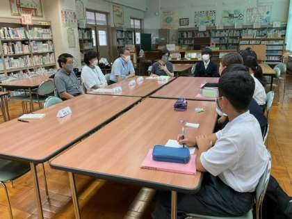 生徒会役員と学校運営協議会委員との意見交換会を行なっています。