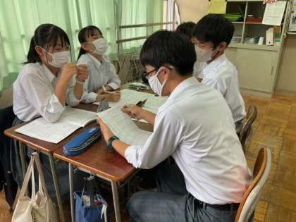 修学旅行のしおりへの記入をしています。