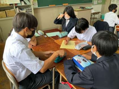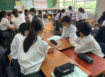 班の係分担を話し合っています。