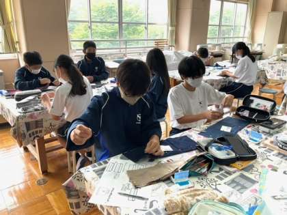 今日は、ポケット口のしつけをしてミシンをかけていきます。