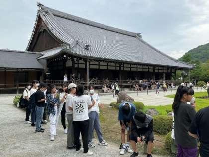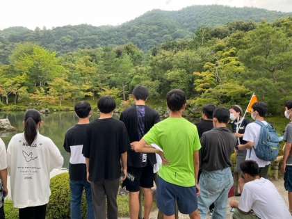 バスガイドさんの説明を聞きながら庭園の見学をしています。