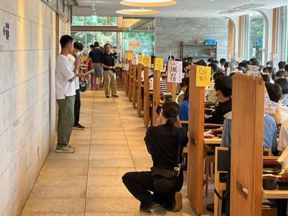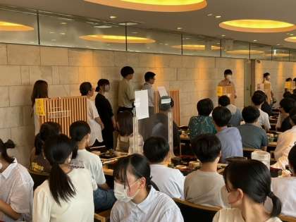 昼食が終わって解散式をしています。