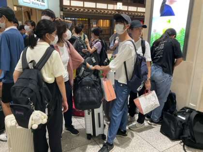 改札を入り、ホームへ上がる階段付近で待機中です。