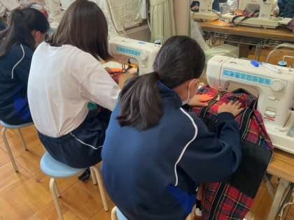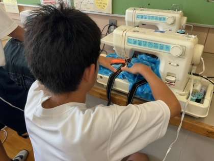ミシンで縫う作業をしています。
