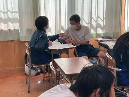友達と意見交換をしています。