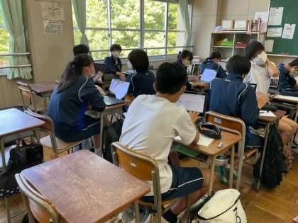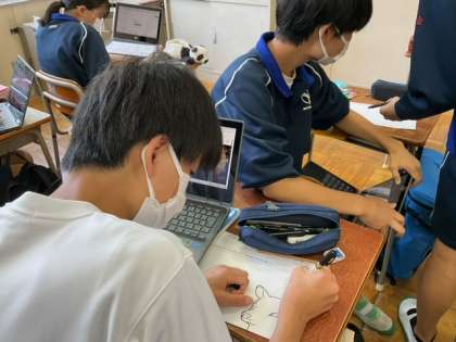 学習端末で写真を探し絵を描いています。