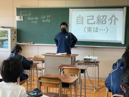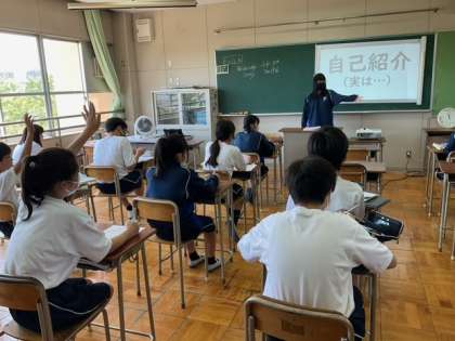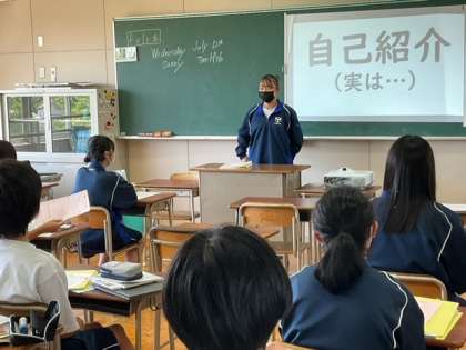 英語で自己紹介をしています。