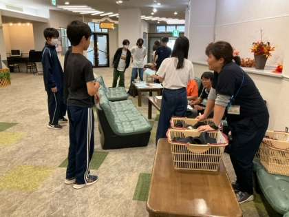 体調確認、部屋の破損箇所チェック、貴重品を預けるなど、それぞれが活動しています。