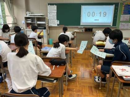 ペアワークで会話の練習をしています。