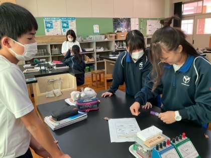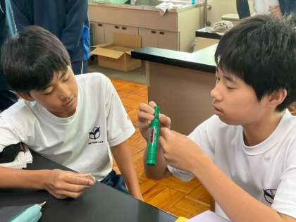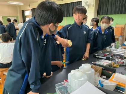 理科室で実験準備中です。