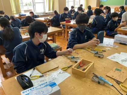 本日のはんだ付け作業が終わり、後片付けが始まりました。