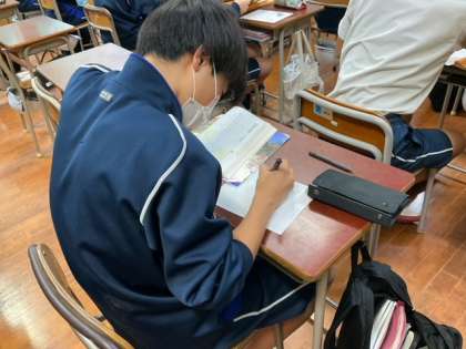 平家物語に関するまとめのプリントに取り組んでいます。