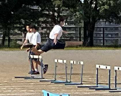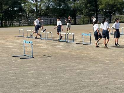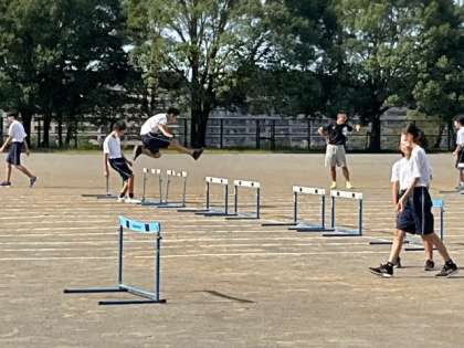 ハードル走の練習をしています。