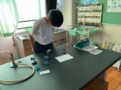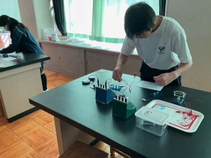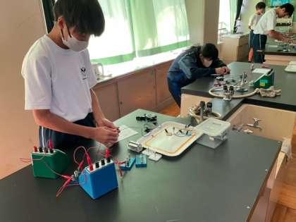 回路の組み立て実技テストをしています。