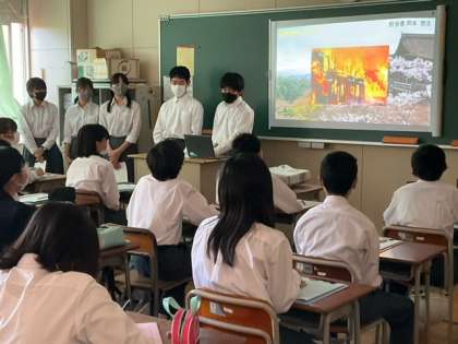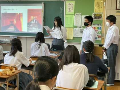 3年生が修学旅行のまとめを発表しています。