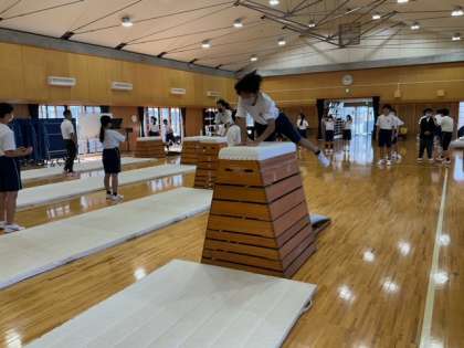 繰り返し練習し、跳ぶ姿勢がきれいになっています。