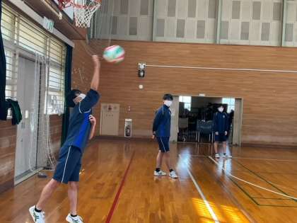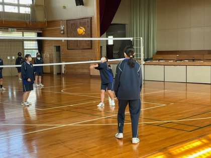 体育館では、バレーボールです。