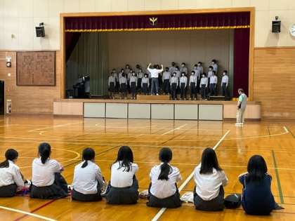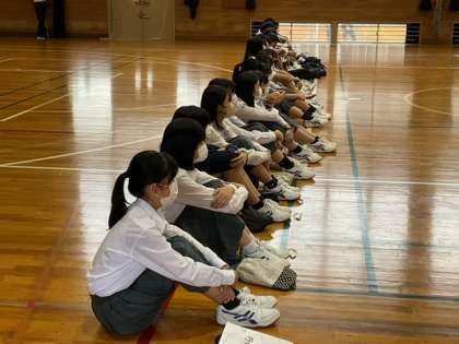 体育館では、1組の交流会が行われています。