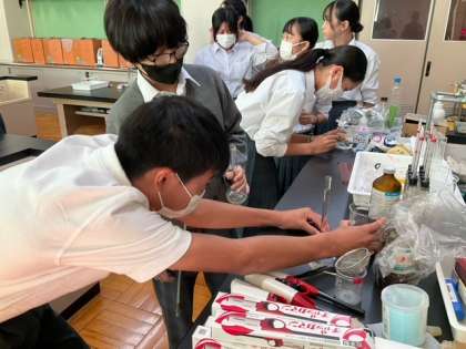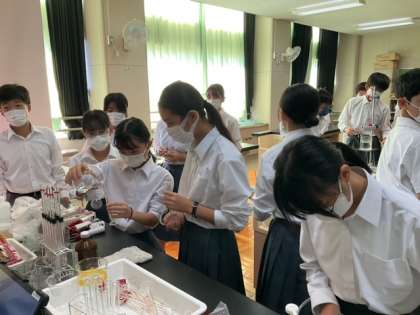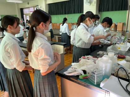 理科室で実験の準備中です。